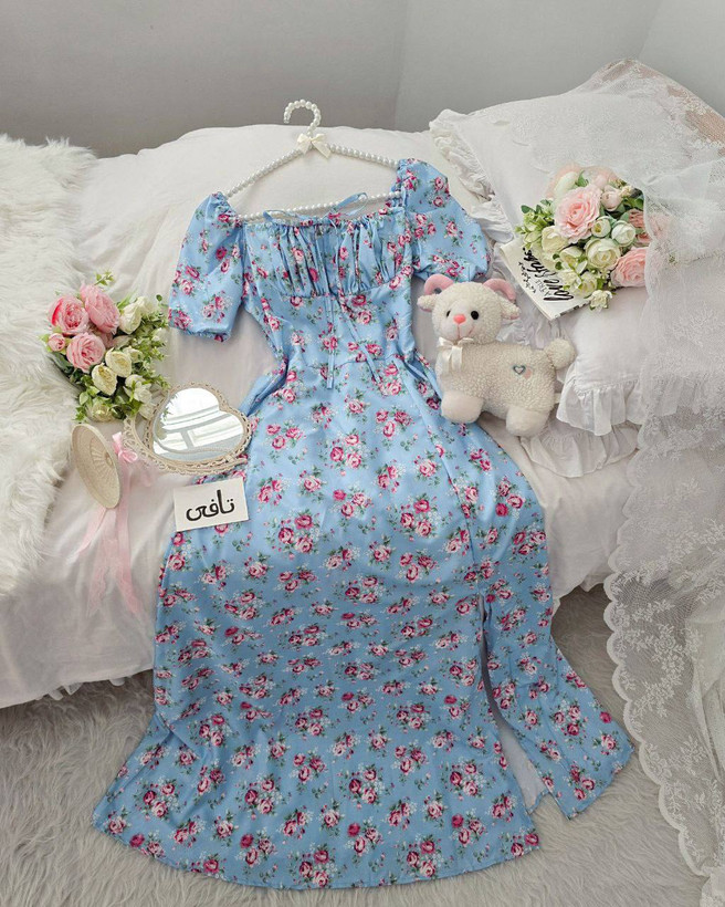 - پیراهن گلدار آستین پفی 🦋🌼🌸