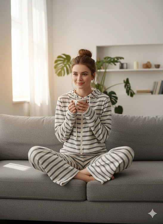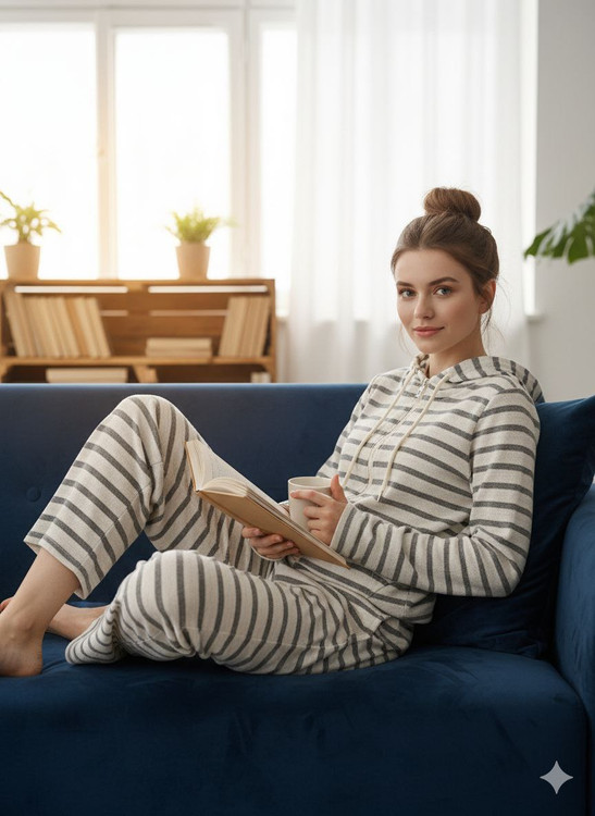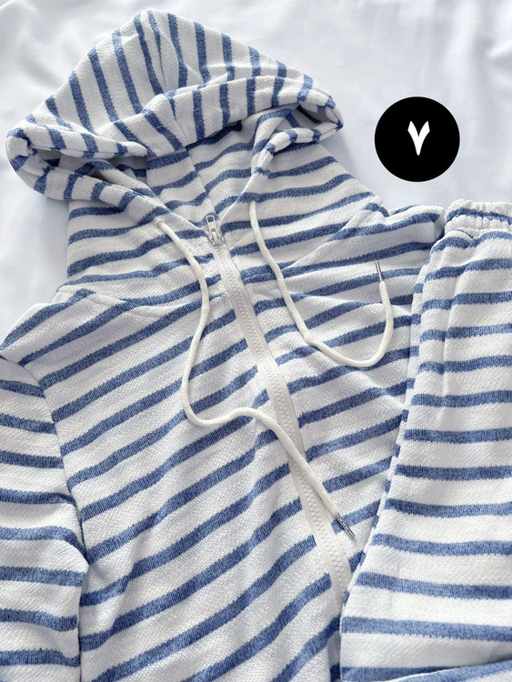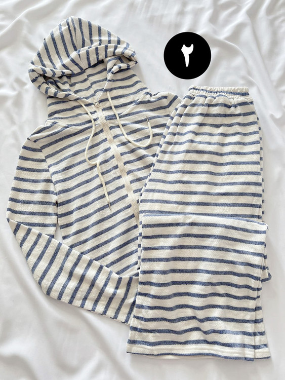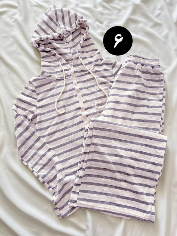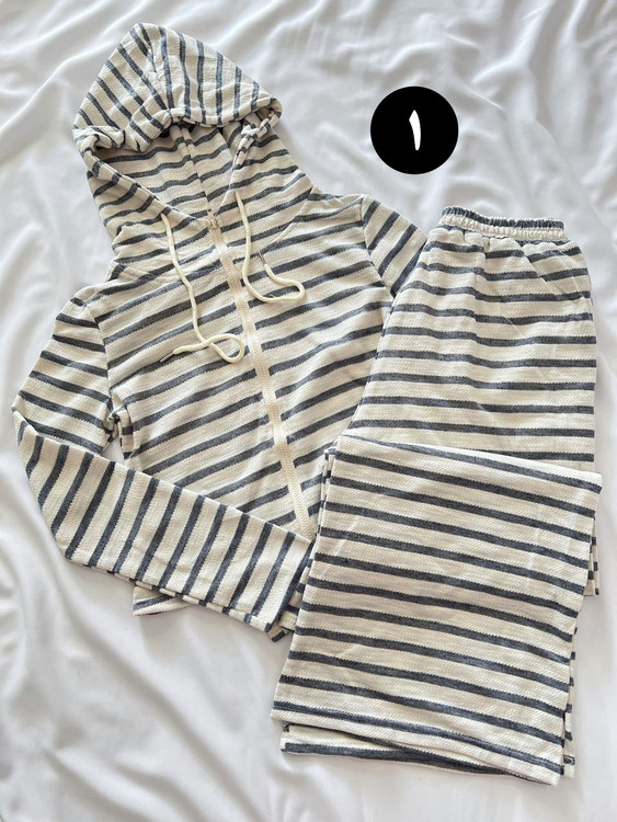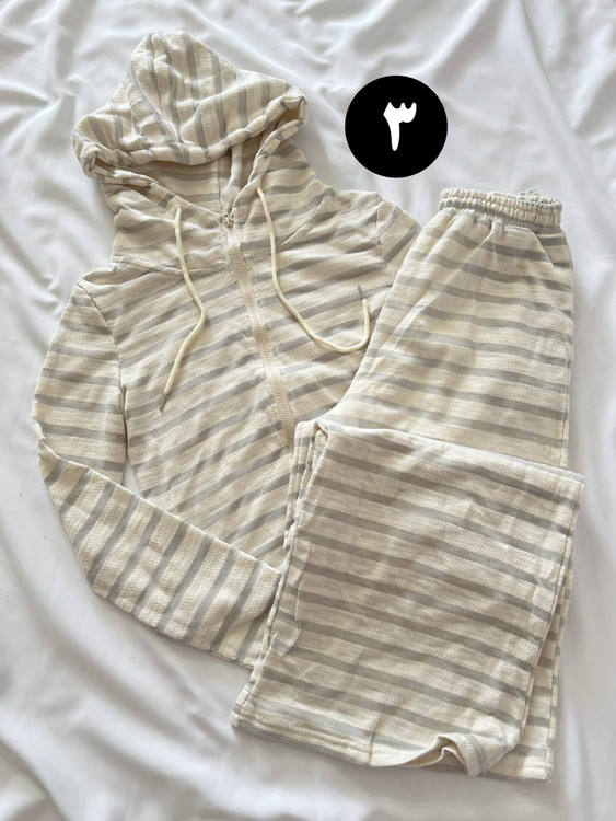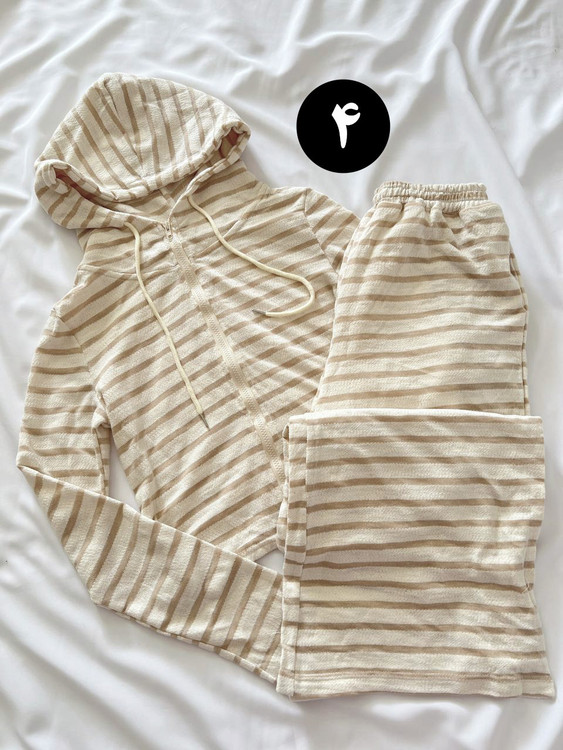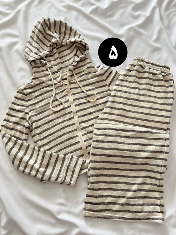 - ست سویشرت کراپی و شلوار بگ راه راه
